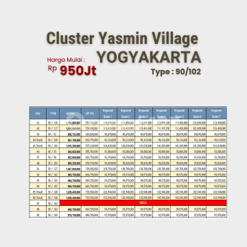 "Cluster One Gate System Yasmin Village Gaya Arsitektur Tropis" Tanah Cocok Untuk : Hunian, Rumah, Kost, Ruko, Homestay, Villa dll... Spesifikasi Rumah: - Luas Bangunan: 90 m² - Luas Tanah: 102 m² Kamar : - 3 Kamar Tidur - 3 Kamar Mandi - Ruang Tamu & Keluarga - Dapur - Teras Depan - Carport - Listrik: 2200 VA - Legalitas: SHM Pekarangan Info Sekitar Lokasi : - Dekat PPPG Kesenian - Dekat Kampus UII - Dekat Kampus UGM - Dekat RSU Gramedika - Dekat Pasar Gentan -------------------------------------- Jl. Kaliurang Km.14, Sukoharjo, Ngaglik, Sleman, Yogyakarta