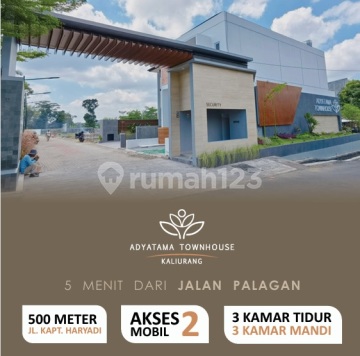 Rumah baru di Adyatama Townhouse Kaliurang, Sardonoharjo, Ngaglik, Sleman ini adalah Rumah Cluster Eksklusif di tengah Kampus UGM & UII Jogja! Total : 12 Unit LT : 136 - 174 m2 LB : 111 - 120 m2 KT : 3 - 4 KM : 3 Sertifikat : SHM & IMB Carport 2 Mobil Selling Poin Produk - Berada di kawasan Perumahan Elit dan Premium di Sleman - Cash Tempo bisa sampai 24 Bulan - Dalam Perumahan one gate system dg Security - Jalan Perum 6 Meter - Diusung oleh developer yang telah berpengalaman - Garansi Bangunan 1 tahun Selling Poin Kawasan : - 500 Meter dari Jalan Kapten Haryadi (Jl. Kaliurang Km. 9) - 10 Menit dari Hyatt Regency Palagan - 13 Menit dari Sleman City Hall - 15 Menit ke Kampus UII Kaliurang - 15 Menit ke Kampus UGM OFAB25-0004