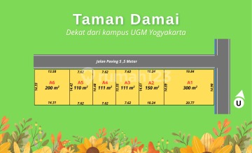 "Promo Harga Lauching Tanah Taman Damai" Tanah Cocok untuk Hunian, Kost dan Villa Spesifikasi Produk: * Luas Tanah 110 m² - 300 m² * Legalitas SHM Pekarangan * Akses Mobil Papasan * Bentuk Bidang Persegi Panjang Jarak Ikon Lokasi: * 9 menit dari Kampus UGM * 5 menit Kampus UII Jogja * 7 menit Kopi Klotok * 4 menit Pondok Pesantren Sunan Pandanaran