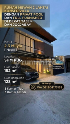 Rumah Mewah 2 Lantai Konsep Villa dengan Private Pool di Wedomartani dekat Jogjabay. ISTIMEWA BANGET‼️ Dijual Rumah Mewah 2 Lantai Konsep Villa di Wedomartani Ngemplak Sleman, dekat Tajem & Jogja Bay. Sudah Full Furnished + Private Pool, desain modern, nyaman untuk hunian maupun investasi di kawasan berkembang Sleman. Legalitas Lengkap: SHM IMB Alamat : Tajem, Wedomartani, Ngemplak, Sleman, Yogyakarta Harga : Rp. 2.3 Milyar Nego Rumah Mewah 2 Lantai Konsep Villa dengan Private Pool di Wedomartani dekat Jogjabay Spesifikasi: Luas Tanah 152 m² Luas Bangunan 128 m² 3 Kamar Tidur 3 Kamar Mandi Ruang Tamu & Ruang Keluarga Dapur + Service Area Carport 2 Mobil Mini Pool Roof Top & Balkon Full Furnished Point Selling: Dekat Stadion Maguwo / Jogjabay Dekat RS Hermina, RS UAD Dekat dekat Kampus Sanata Dharma, UNRIYO, INSTIPER, UPN dll Dekat Pasar Stan Dekat Lotte Mart.