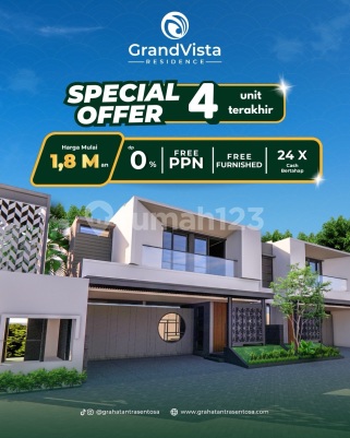 The Grand Vista Residence. Perumahan mewah & ekslusif dengan konsep desain Japannese Modern harga mulai Rp 1.850 M an. Lokasi di Jln Arjuna, tlogoadi, mlati, sleman ✅Konsep Desain Japannese Modern ✅Luas bangunan dari 118 - 188 m2 ✅Luas tanah dari 109 - 129 m2 ✅Lebar jalan perumahan 7 meter ✅Smart Door Lock System ✅One Gate System ✅Private Jacuzzi / Private Pool ✅Jogging Track ✅Jaringan Listrik & Internet Underground ✅Listrik 2200 w ✅Free Canopy Tempered glass ✅Legalitas SHM & IMB/PBG Lokasi premium dan strategis : 7 menit ke RSA UGM 3 menit ke pasar Cebongan 5 menit ke wisata kampung Flory 5 menit ke SPBU Getas 10 menit ke Jogja City Mall 10 menit ke Sleman City Hall 10 menit ke kampus MMTC & UTY 1 6 menit ke terminal Jombor 60 menit dari Bandara YIA 10 menit ke akses tol yogja-solo Hanya 11 unit, segera cek lokasi Skema pembayaran : ~ cash keras ~ cash bertahap ~ kpr Spesial PROMO “TANPA DP & TANPA BUNGA”