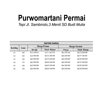 Tepi Jl. Raya Sambiroto, Purwomartani, Sleman - 2 Menit Pamella 7 Supermarket - 3 Menit SD Budi Mulia Dua Panjen Yogyakarta - 4 Menit Univ. Respati Kampus 2 - 7 Menit Candi Sambisari - 7 Menit Candi Kedulan - 10 Menit Jl. Raya Solo-Jogja - 10 Menit Bandara Adisucipto Yogyakarta