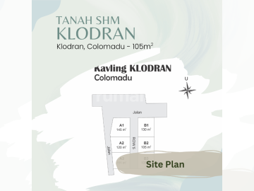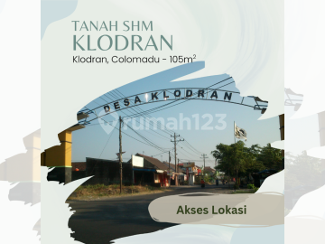 Tanah Kavling Klodran Colomadu, daerah asri cocok untuk bangun rumah tinggal yang dekat ke Solo Kota Spesifikasi : - Luas Tanah Mulai 105 m² - Lebar Depan 10 m - Legalitas SHM Pekarangan - Row Jalan 5 m Selling Point : Dekat ke Pintu Tol Klodran, Embarkasi Haji, Aneka Kuliner, Solo International Mini Soccer, Pasar Klodran, Jl Adi Sumarmo, Kampus Unisri, Taman Balekambang, Stadion Manahan