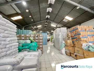 Gudang bekas pabrik plastik di Jebres Solo Luas tanah 800 m2 Luas bangunan 600 m2 Lebar depan 12,5 m Ada kantor kamar tidur 2 kamar mandi 1 Listrik 3 phase Harga Rp 8,5 Milyar nego