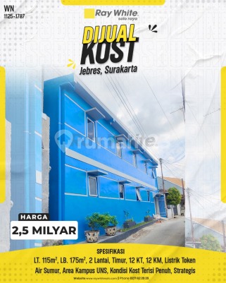 WN 1125xxxx Jebres, Surakarta Jangan lewatkan peluang investasi properti yang sangat menguntungkan di kawasan kampus paling prime di Solo! Lokasinya yang sangat dekat dengan area Kampus UNS menjadikan properti ini aset investasi yang tak pernah sepi. Segera amankan investasi produktif Anda! - Konsep Properti: Rumah Kost (Investasi Aktif) - Luas Tanah (LT): 115 m2 - Luas Bangunan (LB): 175 m2 - Jumlah Lantai: 2 Lantai - Arah Hadap: Timur - Jumlah KT: 12 Kamar Tidur - Jumlah KM: 12 Kamar Mandi - Daya Listrik: Token (Setiap Kamar) - Sumber Air: Air Sumur - Kondisi: Kost Aktif Terisi Penuh - Keunggulan: Area Kampus UNS Keunggulan Lokasi - Berjarak sekitar 5 menit ke Kampus UNS Solo - Berjarak sekitar 7 menit ke RSUD Dr. Moewardi Solo - Berjarak sekitar 10 menit ke Solo Techno Park - Berjarak sekitar 15 menit ke Stasiun Solo Jebres - Berjarak sekitar 20 menit ke Solo Paragon Mall Properti ini menjanjikan passive income yang kuat dan berkelanjutan karena berlokasi strategis di area kampus, menjadikannya aset properti paling aman bagi para investor. Properti ini sangat cocok untuk investor yang mencari pendapatan pasif jangka panjang, orang tua yang mencari aset untuk masa depan anak, atau pengusaha yang ingin memiliki bisnis properti yang sudah berjalan. Manfaatkan properti ini sebagai aset investasi yang menghasilkan pendapatan bulanan stabil atau sebagai guest house potensial. Jika Anda tertarik, mari jadwalkan janji temu untuk meninjau properti ini secara langsung.
