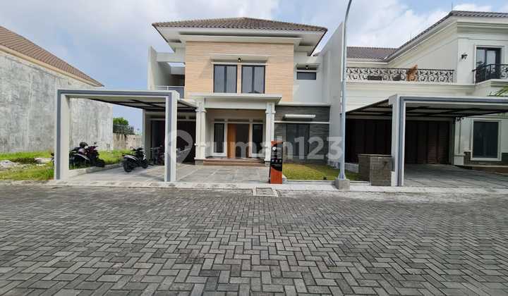 Rumah baru mewah minimalis modern di cluster elite kartasura solo, luas tanah 324m2, lebar depan 12m, luas bangunan 320m2, 2 lantai, 5+1 kamar tidur, 4+1 kamar mandi, garasi 1+2 carport mobil, taman di depan dan belakang, air sumur, listrik 4400w, suasana nyaman dan tenang, one gate system dengan security 24jam, SHM hadap utara, harga 4,65M.