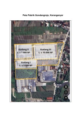 Gudang Industri di Karanganyar solo Temukan gudang yang modern ini, dijual menawarkan lingkungan fasilitas yang lengkap, cocok untuk Anda yang menginginkan gudang ******** tol solo Spesifikasi Utama Properti: - Kamar Mandi: 2 - Sertifikat: HGB - Hak Guna Bangunan - Kondisi Perabotan: Unfurnished Fitur unggulan: - Bebas Banjir. - Dekat Akses Bus Kota. - Dekat Fasilitas Kesehatan. - Dekat Kawasan Bisnis & Industri. - Lingkungan Tenang dan Damai. - Cocok Untuk Investasi. - Properti Bisa Nego. - Akses Jalan Muat 2 Mobil. - Lokasi Bebas Banjir. Terletak di karanganyar gudang ini memberikan kemudahan akses ke berbagai fasilitas menarik. Dengan harga Rp. 130.000.xxx.000, anda bisa memiliki gudang premium yang sudah siap pakai dan bersertifikat HGB - Hak Guna Bangunan. Ambil kesempatan untuk menikmati investasi di kawasan Karanganyar yang nyaman ini! Hubungi segera untuk informasi lebih lanjut!