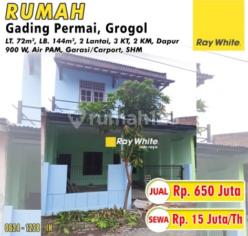 Rumah 2 lantai di Solo Baru, Solo. Dijual rumah di wilayah yang asri dengan pemandangan Dekat Pusat Bisnis. Properti 2 lantai ini berada di lingkungan strategis. - 3 Menit Ke The Park Mall - 4 Menit Ke Pakuwon Mall - 5 Menit Ke Rumah Sakit Indriyati Solobaru - 5 Menit Ke Alun Alun Kidul Solo Rinciannya adalah sebagai berikut: - Kamar Tidur: 3 - Kamar Mandi: 2 - Sertifikat: SHM - Sertifikat Hak Milik - Daya Listrik: 900 W - Hadap: Selatan - Kondisi Perabotan: Unfurnished Tentunya properti ini layak untuk anda dapatkan karena: - Bisa KPR. - Siap Huni. - Bebas Banjir. - Dekat Akses Bus Kota. - Dekat Pusat Perbelanjaan. - Dekat Sekolah Negeri. - Dekat Universitas. - Dekat Fasilitas Kesehatan. - Dekat Tempat Ibadah. - Dekat Pusat Bisnis. - Properti Bisa Nego. - Lokasi Strategis. Properti berikut sudah lengkap dengan fasilitas: - Keamanan 24 jam. - CCTV. - Masjid. - Akses Parkir. - One Gate System. - Taman. Lokasi rumah ini mudah dijangkau, hanya selangkah menuju berbagai fasilitas utama dan menarik. Hanya Rp. 650.000.xxx, anda dapat langsung dapatkan rumah strategis di daerah Solo Baru ini.