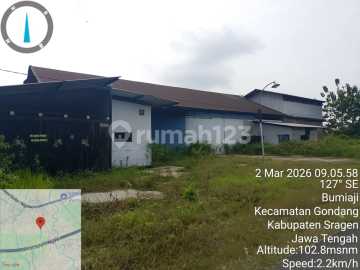 DI JUAL GUDANG EX PABRIK SELEP BERAS DI BUMIAJI, KEC. GONDANG - SRAGEN Spesifikasi : Luas Tanah : 12.700m² Luas Bangunan : 1500m² Dimensi : 30 x 50 SHM PLN : 1300 Watt Hadap : Timur Harga 6M Nego