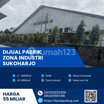 Dijual gudang strategis lokasi Sukoharjo 15000m Dijual Cepat Bu ! Aset Strategis Luas Tanah 15000m Luas bangunan 9000m SHM Fitur dan fasilitas Zona merah / industri Listrik 245 dan 240 kva Akses jln kontener Ijin masih aktif Pabrik masih aktif Cocok untuk : -Industri padat karya -Industri mebel -Industri garmen -Industri tekstil -Industri logam -Industri chemical -Industri gudang -Industri pabrik -Industri briket -Industri sepatu -Dll. Harga 55 M Bisnisnya naik,Tanah naik,Asetnya naik Cicilan 10 tahun 583 Juta Cicilan 15 tahun 434 Juta Cicilan 20 tahun 362 Juta Cicilan 25 tahun 321 Juta Butuh uang sekali dijual cepat BU!! Pembelian via perbankan dapat dibantu dengan beberapa bank BCA CIMB niaga BNI Mandiri Dan berbagai bank lainnya Melayani jasa : -OSS -PKKPR/ITR -Pertek/pengeringan -IMB -Siteplan & gambar -Kontruksi & bangunan -Perijinan -Dll. Info/konsultasi property : >Kirim link/screenshot iklan yang ingin ditanyakan >Nmr telp/wa ada digambar/foto/profil >Silahkan hub Yolanda property telp/wa yg tertera diiklan. Untuk cek lokasi silakan menghubungi Yolanda properti melayani dengan hati hingga transaksi