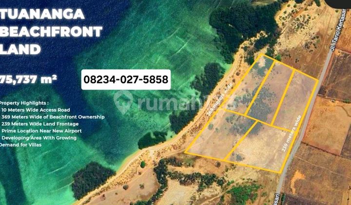 KESEMPATAN LANGKA MEMILIKI LAHAN BESAR DI LOKASI WISATA BERKEMBANG! LAND INVESTMENT OPPORTUNITY: Tuananga, Sumbawa Barat, Indonesia LOKASI STRATEGIS & DESTINASI UTAMA TERDEKAT: Lahan ini berada di kawasan yang sedang berkembang pesat dengan: Dekat Bukit Tuananga: Pemandangan indah dan potensi wisata. Dekat Teluk Moro (Moro Bay): Area dengan potensi pengembangan resort dan established Airbnb. 30 Menit dari Pelabuhan Pototano (Akses utama dari Lombok). Hanya 12 Menit dari Lokasi Calon Bandara Baru (Potensi kenaikan harga properti sangat tinggi!). 2 KM (4 Menit) dari Bukit Samudra (Destinasi view laut yang memukau). SPESIFIKASI LAHAN: Lokasi: Jl. Tano Kertasari, Desa Tuananga, Kecamatan Poto Tano, Kabupaten Sumbawa Barat. Luas Tanah: 75.737 m² atau 757,37 Are (Luas yang ideal untuk pengembangan skala besar seperti resort, cluster villa, atau eco-tourism). Legalitas: SHM (Sertifikat Hak Milik) (Proses transaksi aman dan terjamin). TANAH LOS PANTAI dengan akses langsung ke perairan (Silakan konfirmasi detail Los Pantai/Los Laut kepada kontak yang tertera). JANGAN TUNDA! Amankan investasi Anda di lokasi yang akan menjadi primadona wisata berikutnya! Hubungi segera untuk informasi harga dan negosiasi: Usman