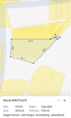 Dijual Tanah Cocok untuk kosan di Jatinangor dekat kampus jalan masuk Mobil Spesifikasi : > Luas Tanah : 845 m2 > Bentuk Tanah : trapesium > Lebar Muka : 18 m > Panjang tanah : > Orientasi Hadap : barat > Legalitas : SHM - Lebar Jalan : 2 Mobil # Rmd