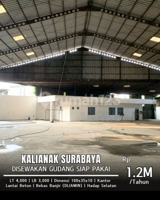 Tev ‼️ *HOT LISTING* *DIJual GUDANG KALIANAK* ✅️MURAH BEBAS BANJIR DAN BEBAS MACET ✅️AKSES CONTAINER 40 FEET ✅️SANGAT DEKAT DENGAN TOL DAN ✅️PELABUHAN TANJUNG PERAK (8 MENIT) LT 4,000m2 LB 3,000m2 LANTAI Beton - BEBAS BANJIR (DIJAMIN) ADA BANGUNAN KANTOR DILUAR DAN DI DALAM LISTRK 16,500 HADAP SELATAN LEBAR 35m PANJANG 100m TINGGI 10m *Harga Jual Rp 25.99M nego* *Harga sewa Rp 1.2M/th* (Min 2 th)