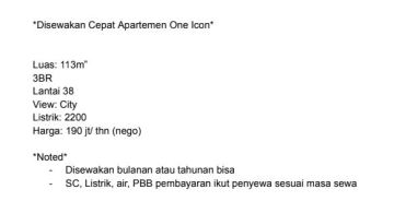 Super Hot Deal ! Sewa Apartemen One Icon Surabaya Apartemen Mewah - Sewa Bulanan dan Tahunan,,Sewa Apartemen One Icon Surabaya,Sewa Bulanan Apartemen, Sewa Harian Apartemen, Sewa Apartemen Murah, Apartemen Murah, Sewa Apartemen Surabaya, Apartemen Surabaya, Sewa Apartemen Bulanan Murah DISEWAKAN CEPAT! APARTEMEN MEWAH ONE ICON Luas: 113 m² 3 Kamar Tidur – Nyaman & Elegan View City yang Menakjubkan Bisa Bulanan / Tahunan Hanya 190 Juta/Tahun! Jangan sampai kehabisan! Apartemen eksklusif ini siap jadi tempat tinggal impian Anda. Hubungi Sekarang! Jangan tunda lagi! info : ******** #DisewakanCepat #OneIconApartment #ViewCity #ApartemenMewah #SewaApartemen #SurabayaLuxuryLiving