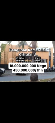*Dijual / Disewakan Bangunan Komersial Langka Citraland Surabaya* [721] ✅️Row Jalan Double Way ✅️Dekat Fore, Excelso ✅️Seberang Gereja Santo Yakobus LT 540m² (15×36) LB 450m² 1 Lantai KM 2 SHGB 2 Sertifikat Hadap Timur Listrik Abonemen 13.000w x 2 Non furnished Sangat strategis cocok untuk cafe, resto, kantor, dll *Jual 18M NEGO* *Rent 450jt/thn* (min. 5 thn) *Thedy - WinMax* 0851xxxxxxxx BIL Tag Rumah Surabaya Barat : Citraland Greenlake Taman Puspa Raya TPR Oakwood Park Eastwood Grand East Wood Buona Vista Woodland Alam Hijau Telaga Utama Road Sentra Taman Gapura Balerina Raya Road International Village Puri Widya Utama Puri Widya Kencana Raffles Garden Stamford Place Stone Gate Waterfront Somerset Esplanade Park Bukit Golf International Bukit Bali Northwest Bukit Palma Dian Istana Rayan Regency Graha Green Garden Graha Family Graha Natura Pakuwon Indah Vila Bukit Regensi VBR Vila Valencia Villa Bukit Mas Darmo Permai Darmo Permai Utara Darmo Permai Selatan SDPS SDPU Simpang Darmo Regency Darmo Harapan Darmo Satelit Darmo Indah Sambisari Lontar Manukan Wiyung Gunungsari Indah GSI Taman Pondok Indah ΤΡΙ Pondok Rosan Graha Sampurna Indah Royal Residence Babatan Pratama Babatan Pilang Babatan Mukti Wisata Bukit Mas Lembah Harapan Pinus Asri Prambanan Residence Kamadeva Syailendra Maharaja Kertabumi Forest Mansion De Casa Residence Lakarsantri Grand Harvest Dukuh Kupang Dukuh Kupang Timur Dukuh Kupang Barat Simolangit Surabaya Barat