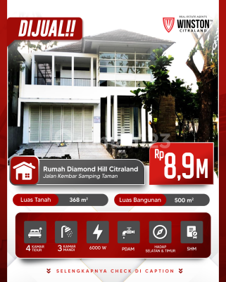 Dijual Rumah Diamond Hill Citraland Jalan Kembar Samping Taman LT 368 LB 500 KT 4 KM 3 Listrik 6600 PDAM Selatan Timur SHM Harga 8,9M Hubungi Daniel 0821xxxxxxxx Winston Citraland