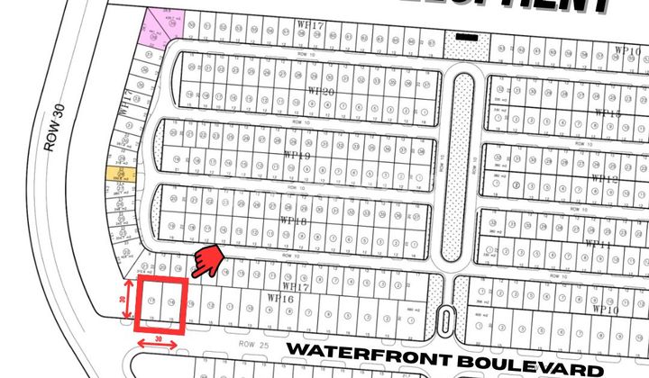 Tanah Waterfront ▪️Main Road ROW 25 ▪️2 Kavling Jejer @ 450 m² (15x30) ▪️Harus Beli Semua 30x30 (900) - HGB Perorangan (Bisa KPT) - Selatan - Rp 21,5 Jt/m²