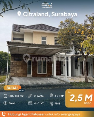 DIJUAL RUMAH BARU GRESS DI CITRALAND LT 180 m² (10x18) LB 158 m² 2 lantai KT 4+1 KM 4+1 (KM dalam 2) Hadap Barat PPJB Listrik 2200 watt Harga 2,5M nego Hub: Brigitta Wong 0811309xxxx Xmarks Tjandra Patos Surabaya Barat dekat Jalan Mayjen Sungkono, HR Muhammad, Raya Lontar, Bukit Darmo Boulevard, Raya Kupang Indah, Kupang Jaya, Tandes, Manukan, Margomulyo, Darmo harapan, Rumah Sakit National Hospital, RS Mitra Keluarga Lontar, RS BDH, RS Royal Taruma, RS PHC Surabaya barat, Pakuwon Mall, Lenmarc Mall, Spazio Tower, PTC, Loop Graha Family, Universitas Ciputra, Sekolah Ciputra, Cita Hati West Campus, Sekolah Gloria, Pasar Lontar, Pasar Dukuh Kupang, Pasar Tandes, pasar Lakarsantri