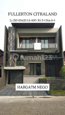 Dijual Rumah baru Di Fullerton Citraland Utama Surabaya barat Dimensi 10x21 Lt 210m2 Lb 400m2 an Utara HGB (masih panjang) PLN 1300 KT 5+1 KM 6+1 2.5 lt (split level) Harga 7M (nego) Hubungi : MAX | 0813xxxxxxxx DB REAL ESTATE INDONESIA