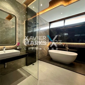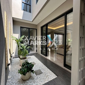 Spesifikasi : • LT / LB : 210m2 (10x21) / 335m2 • KT / KM : 4+1 / 4+1 • Hadap : Utara • Sertifikat : HGB • Keterangan : Listrik 4400 Watt, Semi Furnished, Carport 2 Mobil, Taman Depan dan Belakang, Kusen Aluminium YKK, Fitur Premium, Standing Bathtub di Master Ensuite, Smart Lock Key (Pintu Solid Wood), Wastafel dan Kloset by Grohe, Granite Tile 75x150 ex Wisma Sehati, Private Balcony di Primary Master Bedroom, Kanopi Thematic Custom • Harga : 5,8 M/N (TAV)