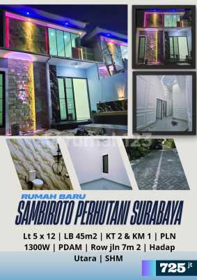_Rumah Baru Siap Huni (Tinggal Satu)_ *Sambiroto Sambikerep Surabaya, dekat G walk Citraland* ▪️Lt 5 x 12 (LB 45m2) ▪️K Tidur 2 & K Mandi 1 ▪️PLN 1300W ▪️PDAM ▪️Row jln 2 mobil ▪️Hadap Utara ▪️Spek material istimewa ▪️One gate area dan bebas banjir ▪️SHM ▪️HARGA 725jt *Arg