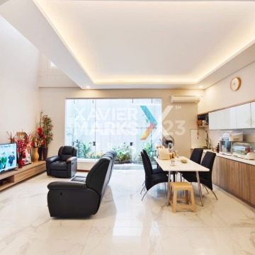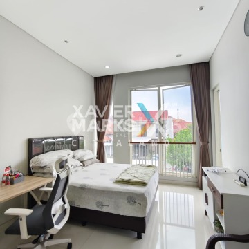 Spesifikasi : • LT / LB : 210m2 (10x21) / 320m2 • KT / KM : 4+1 / 4+1 • Hadap : Utara • Sertifikat : SHM • Keterangan : Listrik 4400 Watt, Carport 2 Mobil, Service Area Terpisah, Semi Furnished, Sanitary Grohe Kohler, Double Way, One Gate System Security • Harga : 5,75 M/N (BUL)