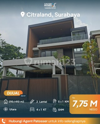 Rumah Modern Tropis citraland Surabaya Premium Spec 3 Lt Private Lift Schindler 9 Person Semi Furnish Smart home system mesh wifi Carport 4 mobil LT : 210 ( 10x21) LB : 410 m2 KT : 4+1 KM : 5+1 Listrik : 13.600 Watt Hadap : Utara Surat : SHM Harga Jual : 7.750M Info : Kuswanto XMTP 0812xxxxxxxx Surabaya Barat dekat Jalan Mayjen Sungkono, HR Muhammad, Raya Lontar, Bukit Darmo Boulevard, Raya Kupang Indah, Kupang Jaya, Tandes, Manukan, Margomulyo, Darmo harapan, Rumah Sakit National Hospital, RS Mitra Keluarga Lontar, RS BDH, RS Royal Taruma, RS PHC Surabaya barat, Pakuwon Mall, Lenmarc Mall, Spazio Tower, PTC, Loop Graha Family, Universitas Ciputra, Sekolah Ciputra, Cita Hati West Campus, Sekolah Gloria, Pasar Lontar, Pasar Dukuh Kupang, Pasar Tandes, pasar Lakarsantri