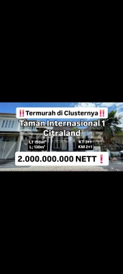 *‼️Termurah di Clusternya*‼️ *Rumah Siap Huni Citraland Cluster Taman Internasional 1 Surabaya* [750] ✅️Citraland Utama ✅️Selangkah ke Walk LT 150m² (10×15) LB 130m² 1 Lantai KT 3+1 KM 2+1 SHM Hadap Selatan Listrik 5500 *Harga ~2.3M~* turun jadi *2M NETT* Klien only, no cobroke *Thedy - WinMax* 0851xxxxxxxx BR7MCRBBTN Tag Rumah Surabaya Barat : Citraland Greenlake Taman Puspa Raya TPR Oakwood Park Eastwood Grand East Wood Buona Vista Woodland Alam Hijau Telaga Utama Road Sentra Taman Gapura Balerina Raya Road Taman International Village International Village Villa Sentra Raya Puri Widya Utama Puri Widya Kencana Raffles Garden Stamford Place Stone Gate Waterfront Somerset Esplanade Park Bukit Golf International Bukit Bali Northwest Bukit Palma Dian Istana Rayan Regency Graha Green Garden Graha Family Graha Famili Graha Natura Pakuwon Indah Villa Bukit Indah VBI Villa Bukit Regensi VBR Villa Valencia Imperial Hill Imperial Golf The Mansion Pakuwon Indah Villa Bukit Mas Darmo Permai Darmo Permai Utara Darmo Permai Selatan SDPS SDPU Simpang Darmo Regency Villa Bukit Permai Darmo Harapan Darmo Satelit Darmo Indah Sambisari Lontar Manukan Wiyung Gunungsari Indah GSI Taman Pondok Indah ΤΡΙ Pondok Rosan Graha Sampurna Indah Royal Residence Babatan Pratama Babatan Pilang Babatan Mukti Wisata Bukit Mas Lembah Harapan Pinus Asri Prambanan Residence Kamadeva Syailendra Maharaja Kertabumi Forest Mansion De Casa Residence Lakarsantri Grand Harvest Dukuh Kupang Dukuh Kupang Timur Dukuh Kupang Barat Simolangit Surabaya Barat