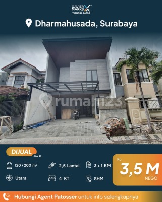Baru Gress!! Jual Rumah Minimalis Modern di Dharmahusada Surabaya * Luas Tanah 8 x 15 (120 m²) * Luas Bangunan ± 200 m² * 2,5 lantai * 4 Kamar Tidur * 3 Kamar Mandi + 1 deg Listriknya -7700watt deg Utara * Akses service tersendiri * 2 Carport degRow 3 mobil * Kanopi kaca depan rumah * Spesifikasi mewah & modern SHM,IMB lengkap Harga: 3,5 M nego Hubungi Danny - 081132xxxx Xmarks Patos Surabaya Timur dekat Jalan Raya MERR, Rungkut, Kenjeran, Arif Rahman Hakim, Kertajaya, Dharmahusada, Kalijudan, Manyar, Rumah Sakit Premier, RS Haji, RS Unair, RS Mitra Keluarga, RS Gotong Royong, Galaxy Mall, Pakuwon City Mall, Transmart Rungkut, Kampus ITS, UNAIR, Sekolah Kristen Petra, Sekolah Gloria Galaxy, Pasar Keputran Timur, Jembatan Kenjeran, Taman Surabaya, Harmoni Keputih