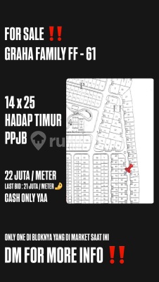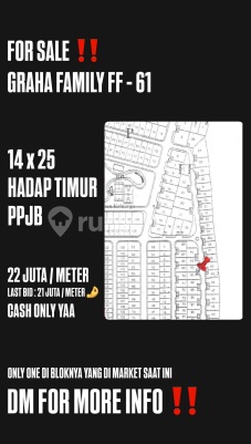 *HAMPIR SOLDD KAVLING GRAHA SATU SATUNYA DI BLOKNYA‼️* *ONE AND ONLY DI BLOKNYA YANG ON MARKET ‼️* *FOR SALE KAVLING GRAHA FAMILY* Blok FF-61 - 14x25 - Hadap Timur - PPJB *HARGA : 22 JUTA / METER* *(LAST BID VALID 21 JUTA / METER ‼️)* CONTACT : JUSTIN || DBTEAM