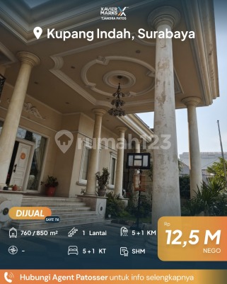 Jual Rumah Mesa Klasik Hitung Tanah Kupang Indah MURAH BANGET JUAL HITUNG TANAH!! - Dekat jalan raya KUPANG BARU - Dekat jalan tol - bisa utk rumah tinggal , kantor , resto , cafe - kondisi rumah masih sangat bagus Luas Tanah 760m² (20x38) Luas Bangunan 850m² KT 5+1 KM 5+1 PLN 26.000 PDAM Full Furnish 11 AC Lantai Full Marmer Carport 3 Mobil Garasi 2 Mobil SHM Harga 12,5M Nego Cantik More Info : SAFE ESTATE - 0819222xxxx Part of XMarks Patos PAKUWON CITY MALL Surabaya Barat dekat Jalan Mayjen Sungkono, HR Muhammad, Raya Lontar, Bukit Darmo Boulevard, Raya Kupang Indah, Kupang Jaya, Tandes, Manukan, Margomulyo, Darmo harapan, Rumah Sakit National Hospital, RS Mitra Keluarga Lontar, RS BDH, RS Royal Taruma, RS PHC Surabaya barat, Pakuwon Mall, Lenmarc Mall, Spazio Tower, PTC, Loop Graha Family, Universitas Ciputra, Sekolah Ciputra, Cita Hati West Campus, Sekolah Gloria, Pasar Lontar, Pasar Dukuh Kupang, Pasar Tandes, pasar Lakarsantri