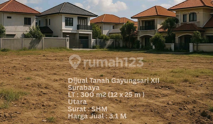 For Sale Tanah Gayungsari XII LT 300m2 ( 12 x 25 m ) Sertifikat SHM Hadap Utara Harga: 3,1 Miliar (Nego) ********