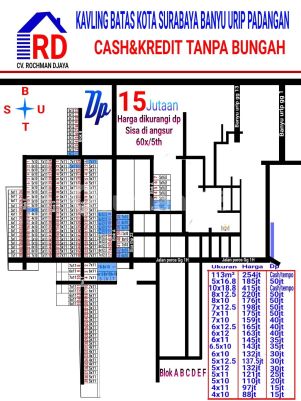 CV,ROHMAN DJAYA PROPERTY Tanah Kavling & Cluster Perumahan Lokasi: BANYU'IRIP ( BATAS SURABAYA BARAT BENOWO) Dekt terminal Benowo Dekt pasar Benowo Dekt SMPN 14 Benowo Dekt ASRAMA KP3 Benowo Harga 88 jtaan Dp 15 jta ( bisa di angsur) Angsuran 1 jt'an perbulan (flatt) KRIDIT INHOUSE (tanpa bunga & denda Samapi lunas) Tenor 5 tahun. Dp lunas langsung bangun rumah jga BOLE. Free Biaya surat. Jln kavling 5,5 mtr full PAVING Info bisa Telp/wa:08133653xxxx.