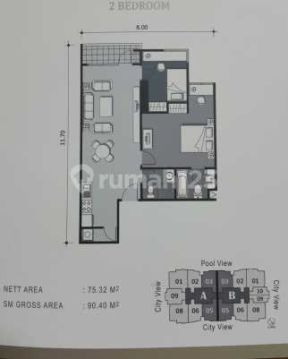 2 BR Luas 80 m2 City View Plaza Surabaya, jl Pemuda. # Fully Furnished Modern Minimalis TV Sony 43'', 3 AC DAIKIN, # Harga Jual Rp 1.65 M .. Sewa 1 thn: Rp 75 jt .. Sewa 6 bln: Rp 40 jt
