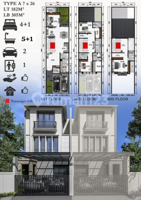 Rumah Baru Gress - Modern Minimalist di Graha Famili! Tersedia 4 unit rumah eksklusif, masing-masing 3 lantai dengan dimensi 7x26 m, luas tanah 182 m² dan bangunan 305 m². Hunian ini menghadirkan 4+1 kamar tidur dan 5+1 kamar mandi (semua kamar mandi dalam), dilengkapi carport untuk 2 mobil dan listrik 6.600 watt. Hadap selatan (unit 45 A&B) dan utara (unit 46 A&B), legalitas SPPJB, serta fitur premium: private lift, smart home system, dan bonus pembelian pertama berupa 6 AC, CCTV, WiFi cable, kitchen set, water filter, smart door lock, serta pompa air atas & bawah. Harga Rp 8 M/unit nego dengan skema pembayaran fleksibel: DP 40% dicicil 10x, sisanya cash/KPR saat AJB. Serah terima 18 bulan. Hunian modern dengan fasilitas lengkap di kawasan prestisius Surabaya Barat, cocok untuk keluarga maupun investasi jangka panjang. SPESIFIKASI : 4 Unit Rumah GRAHA FAMILI Modern Minimalist @ 3 Lantai Dimensi: @ 7x26 Luas Tanah : @ 182 Luas Bangunan : @ 305 Kamar Tidur : @ 4+1 Kamar Mandi : @ 5+1 (Semua Kamar Mandi Dalam) SPPJB Hadap: Selatan Utara Listrik @ 6600W Carport: @ 2 Special Features: * Private Lift * Smart Home System Bonus Untuk Pembelian Pertama: * 6 AC * CCTV * WiFi Cable * Kitchen Set * Water Filter * Smart Door Lock * Pompa Air Atas & Bawah Cara Pembayaran: * DP 40% 10x * Sisanya Cash / KPR pada saat AJB Baru Gress Serah Terima: 18 Bulan HARGA @ Rp 8M Hubungi Segera : Willy Chandra-WESTLAND ********