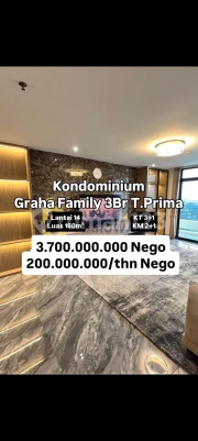 *Jual / Disewakan Kondominium Graha Family 3Br Tower Prima B Full Furnish Mewah* [757] ✅️NEW Full Modern Interior Furnished ✅️Kamar Utama Ada Kamar Mandi dalam Tower Prima B Lantai 14 KT 3+1 KM 2+1 Luas 160m² Strata Title Golf View Hadap Barat & Utara Sanitair Toto & Kohler 1 Kitchen 1 Pantry *Jual 3.7M negoo* *Sewa 200jt/thn nego* *Thedy - WinMax* 0851xxxxxxxx Tag Apart Sby Barat Rumah123 La Riz Mansion Anderson Benson Orchard Tanglin Waterplace Puncak Bukit Golf Pbg Apartemen Puncak Permai Apartemen Puncak CBD The Via The Vue Vertu Voila Soho Skyloft Adhiwangsa Kondominium Graha Family Surabaya Barat