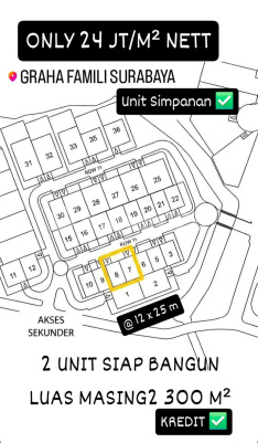 *LANGKA, BISA KPT! KAVLING GRAHA FAMILY LUAS 300M2 KOTAK* GRAHA FAMILY BLOK EF AVAILABLE 2 UNIT JEJER LT 300M2 (12x25) HADAP UTARA PPJB SPLIT BISA KPT ROW JALAN LEBAR HARGA 24 JUTA/M2 NEGO MAX 0813xxxxxxxx DB REAL ESTATE INDONESIA