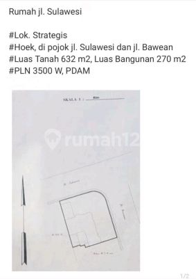 Disewakan! Rumah Usaha 0 jalan Sulawesi. Surabaya Luas Tanah 632m2 Luas bangunan 270m2 0 Jalan Sulawesi - Bawean SHM 1 lantai Hook ( utara- Timur) kondisi bagus & terawat harga Sewa 400 jt / th Min sewa 2 th