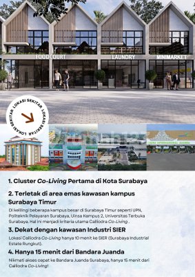 INVESTOR ITU BUTUH YANG PASTI CUAN [Pertama di Surabaya!] Rumah Kos berkonsep co-living persis di sebelah UPN VETERAN USAHA KOS TANPA ONGKOS ada opsional management Lokasi 0 jalan raya Dikelilingi 4 kampus besar Lingkungan sudah terbentuk, One gate system dan keamanan 24 jam Ukuran luas tanah 5 x 13 START HARGA 1,8 M-AN PROMO TRIPLE BONUS - FULLY FURNISHED (Spring bed, lemari, meja, AC) setiap kamar - FREE BPHTB, AJB, Balik Nama (terima SHM) dan ALL BEA KPR - Cara Bayar KPR: FREE ANGSURAN SAMPE SERAH TERIMA RUMAH (Untuk 5 Unit pertama) Info lebih lanjut hubungi: ....