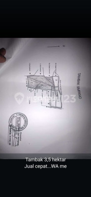 Tambak Dijual cepat Tambak 3,5 hektar Leter C Rp 400000xxxx Sangat strategis, tempat pemancinganan yang selalu ramai, Modal cepat balik. Buruan siapa cepat untung