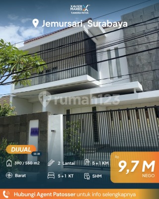 Dijual Rumah Furnished Jemursari Surabaya Luas Tanah 390 m² Dimensi 13x30 Luas Bangunan 550m² 5 + 1 Kamar Tidur 5 + 1 Kamar Mandi Interior - Partial Furnished Hadap Barat Bangunan 2 Lantai Listrik 10600 watt Surat Hak Milik Row jalan 4 mobil lega Carport untuk 4 mobil Lantai full marmer & granit Harga Rp. 9,7 M nego More info : Stephanie 0817518xxxx Xavier Marks Tjandra Patos Surabaya Selatan dekat Jalan Ahmad Yani, Jemursari, Tenggilis Mejoyo, Gayung Kebonsari, Pagesangan, Ketintang, Margorejo, Siwalankerto, Rumah Sakit Royal Surabaya, RS Bhayangkara, RS Islam Jemursari, RSAL Dr. Ramelan, RS Marina, Mall CITO City of Tomorrow, Royal Plaza, Maspion Square, Plaza Marina, DTC Wonokromo, UNESA Ketintang, Universitas Kristen Petra Siwalankerto, PENS, STIKOM Surabaya, Pasar Wonokromo, Pasar Karah, Pasar Gayungan, Pasar Margorejo Indah, Masjid Nasional Al-Akbar Surabaya, Terminal Joyoboyo, Bundaran WARU, Taman Pelangi, Darmo Park