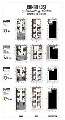 KOS GUNUNG ANYAR DEKAT UPN Terdapat 4 type Type A - LT 84 - LB 176 - KT 11 - KM 11 - SHM - Selatan - + Cuci jemur - + Dapur - + Parkir Motor HARGA 2,2 M Type B (HOOK) - LT 80 - LB 166 - KT 7 - KM 8 - SHM - Timur - + Dapur - + Cuci jemur - + Parkir Motor - + R.santai outdor HARGA 1,95 M Type C - LT 62 - LB 130 - KT 7 - KM 8 - SHM - Timur - + Dapur - + Cuci jemur - + Parkir Motor HARGA 1,75 M Type D - LT 96,2 - LB 201 - KT 11 - KM 11 - SHM - Timur - + Dapur - + Cuci jemur - + Parkir Motor HARGA 2,35 M