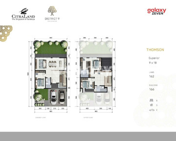 GREEN HOMES FOR LIFE Mengusung spirit Green Homes for Life, DISTRICT 9 hadir dengan green atmosphere, mulai gate cluster yang megah dari material batu alam dikelilingi jajaran pohon rimbun, lansekap menghadirkan elemen hardscape & softscape bernuansa tropis, dan desain rumah tanpa pagar yang diberi porsi garden cukup luas. Anda tidak akan menemui kemewahan green living di cluster lain, karena DISTRICT 9 ditunjang dengan thematic garden seluas hampir 5.000 m² yang tersebar di 3 titik spot cluster. Penghuni memiliki privilege untuk berolahraga, bersosialisasi dan menikmati family time di tengah taman-taman yang cantik dan teduh. JUAL RUMAH BARU MODERN TROPIS BERKONSEP RUMAH HIJAU CITRALAND >> TIPE THOMSON Superior Luas Tanah 162m² ( 9 x 18 ) Luas Bangunan 166 m² Kamar Tidur 3 Kamar Mandi 3 Carport 2 Taman Depan & Belakang ROW jalan 10meter PLN 4.400w Air Water Treatment HGB Harga 4.209.000.xxx >> TIPE THOMSON Deluxe Luas Tanah 162m² ( 9 x 18 ) Luas Bangunan 191 m² Kamar Tidur 4+1 Kamar Mandi 3+1 Carport 2 Taman Depan & Belakang ROW jalan 10meter PLN 4.400w Air Water Treatment HGB Harga 4.425.000.xxx >>FASILITAS : - Family Club House - Swimming Pool - Jogging Tracks - Play Ground - Thematic Gardens/ Parks - Multifunction Room - BBQ Area - Integrated CCTV area - Solar home system - Free Public Wi-fi >>LOKASI & JARAK: 50 m - Mimi School 650 m - Patung Merlion Citraland 1,1 km - Super Indo - Citraland 1,3 km - Gereja Katolik Paroki Santo Yakobus 1,3 km - Surabaya Intercultural School 1,5 km - G Walk 2,5 km - Konsulat Jenderal AS 3,5 km - Ciputra Hospital 3,7 km - National Hospital 3,7 km - Hokky Supermarket 3,8 km - Universitas Ciputra 5,8 km - Pakuwon Mall, Mc Donald's Graha Famili 4,5 km - SMA Kristen Petra 1 8,8 km - Pintu Tol Satelit 17 km - Pelabuhan Tanjung Perak 29 km - Juanda International Airport