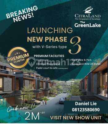 Dijual Rumah Baru 2 Lantai, Lokasi Premium di The Greenlake Citraland Surabaya Barat New Phase 3 Cluster Premium Terbaru di The Greenlake Citraland Surabaya Barat Luas Bangunan Tipe : * Vianza 180m² (10×18) * Virelin 136m² (8×17) * Velora 105m² (7×15) * Verdela 90m² (6×15) Luas Bangunan Tipe : * Vianza 279m²/ 218m² (Optional with Pool) * Virelin 224m²/ 183m²/157m² * Velora 151m²/ 142m² * Verdela 113m²/ 102m²/ 91m² KT 3 dan 4 KM 3 dan 4 PLN 2200 watt/3500 watt/5500 wat Bangunan 2 Latai Free Canopy & Smart Home Free Biaya KPR & Subsidi DP 5% Free Biaya AJB Uang Tanda Jadi Hanya 25jt langsung pilih unit Harga Start 2M an Hubungi Danie Lie RayWhite Royal Residence WA/Call 0812358xxxx