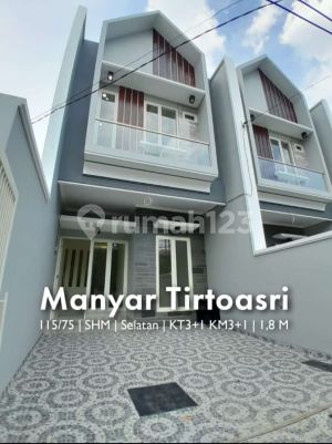 A106. Dijual rumah baru Scandinavian MANYAR TIRTOASRI ⚬ *SANGAT DEKAT PETRA MANYAR !* ⚬ *Perumahan Favorit Tengah Kota SBY Timur* ⚬ *BEBAS BANJIR* ⚬ LT 75 m2 (5x15 ) ⚬ LB ±115m² ⚬ KT 3+1 ; KM 3+1 ⚬ PLN 2200w ⚬ Hadap Selatan Barat ⚬ SHM, IMB Lgkp Bisa KPR ⚬ Granit tile ; TOTO ⚬ Carport 2mbl ⚬ FREE Tandon atas bawah + Pompa Air atas bawah ⚬ *Harga 1,8M* Hubungi: Rian - Raywhite Darmo Permai 0821xxxxxxxx