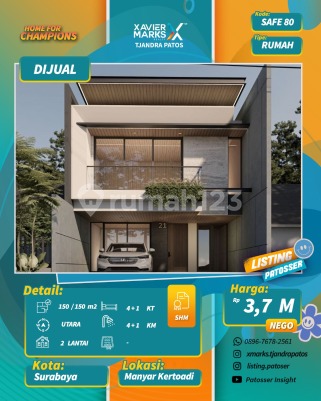 Lokasi Favorit Manyar Kerta Adi 2 Unit Baru Gress Manyar Kerta Adi LT 7,5x20m² LB ±150m² KT 4+1 KM 4+1 Hadap Utara SHM,IMB Lengkap Galvalum, Kusen aluminium Pintu utama jati PLN 5500 Carport 2 mobil Toto Gang pertama, Row jalan 3 mobil Free tandon atas bawah + 2 pompa Harga : 3,7 M Serah terima November 2025 More Info : SAFE ESTATE - 0819222xxxx Link Whatsapp : ******** Part of XMarks Patos PAKUWON CITY MALL Surabaya Timur dekat Jalan Raya MERR, Rungkut, Kenjeran, Arif Rahman Hakim, Kertajaya, Dharmahusada, Kalijudan, Manyar, Rumah Sakit Premier, RS Haji, RS Unair, RS Mitra Keluarga, RS Gotong Royong, Galaxy Mall, Pakuwon City Mall, Transmart Rungkut, Kampus ITS, UNAIR, Sekolah Kristen Petra, Sekolah Gloria Galaxy, Pasar Keputran Timur, Jembatan Kenjeran, Taman Surabaya, Harmoni Keputih