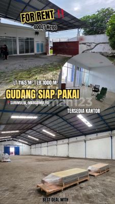 *HOT Termurah* *Disewakan Gudang Siap Pakai* *SuriMulia Margomulyo* Bisa akses truck 40ft Ada kantor uk. 5x6 Row Jalan sangat Loss (3 kontainer Loss) LT 1165 m² (±20x60) LB 1000 m² Hadap Utara *Harga 400 Jt* stv Best Deal Natalia winmax 0822xxxxxxxx