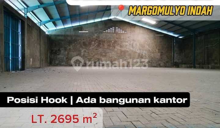 DIJUAL GUDANG MARGOMULYO INDAH Spesifikasi : • LT / LB : 2695 m² ( 34x75 ) / 1500m2 • Bangunan Gudang masih bagus dan siap huni • Sertifikat : SHGB (sampai thn 2047) • Hadap : Utara • Hook • Udh ada bangunan kantor nya • Listrik 1 3500VA • Listrik 2 2200 VA • Sertifikat On Hand Harga 6jt /m2 | 16,1 M (Nego) #w.ns.¥Uv