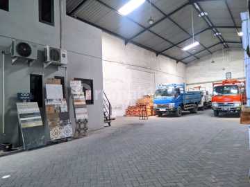 JUAL CEPAT GUDANG BERPAGAR MARGOMULYO PERMAI LUAS 600 an m² BLOK DEPAN LT 608 m² (±12x50) PLN 10.500w Ada kantor SHM 5,999M nego