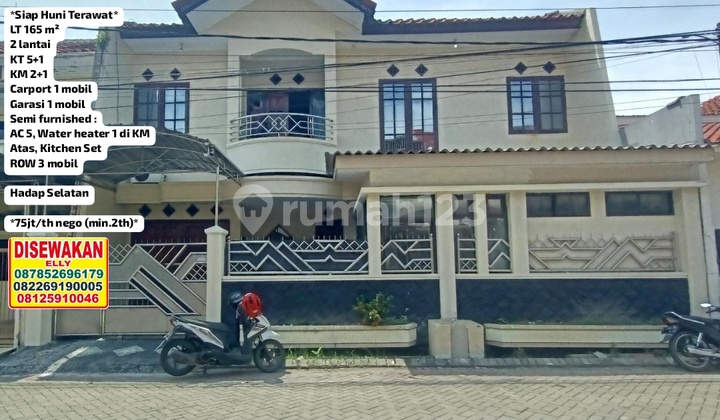 DISEWAKAN SEMI FURNISHED* *RUMAH MULYOSARI MAS* *Siap Huni Terawat* LT 165 m² 2 lantai KT 5+1 KM 2+1 Carport 1 mobil Garasi 1 mobil Semi furnished : AC 5, Water heater 1 di KM Atas, Kitchen Set ROW 3 mobil hubungi: Elly 0822xxxxxxxx Hadap Selatan *75jt/th nego (min.2th)*